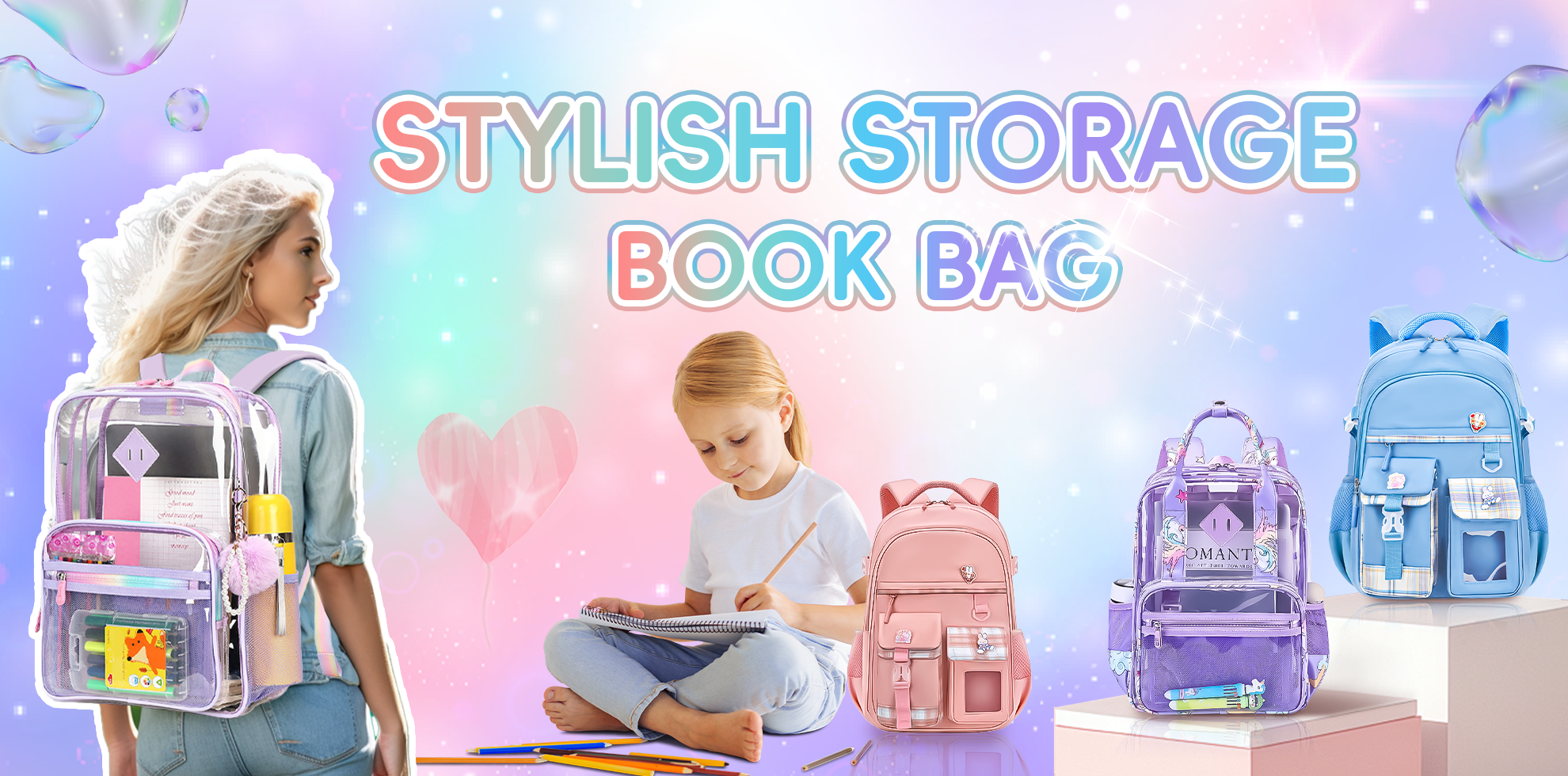 KEBEIXUAN Cute Girls Backpack Schoolbag,Kawaii Rainbow Cartoon Print