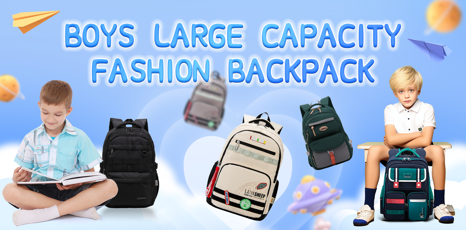 KEBEIXUAN Side Open School Bags, Boys Reflective Backpack