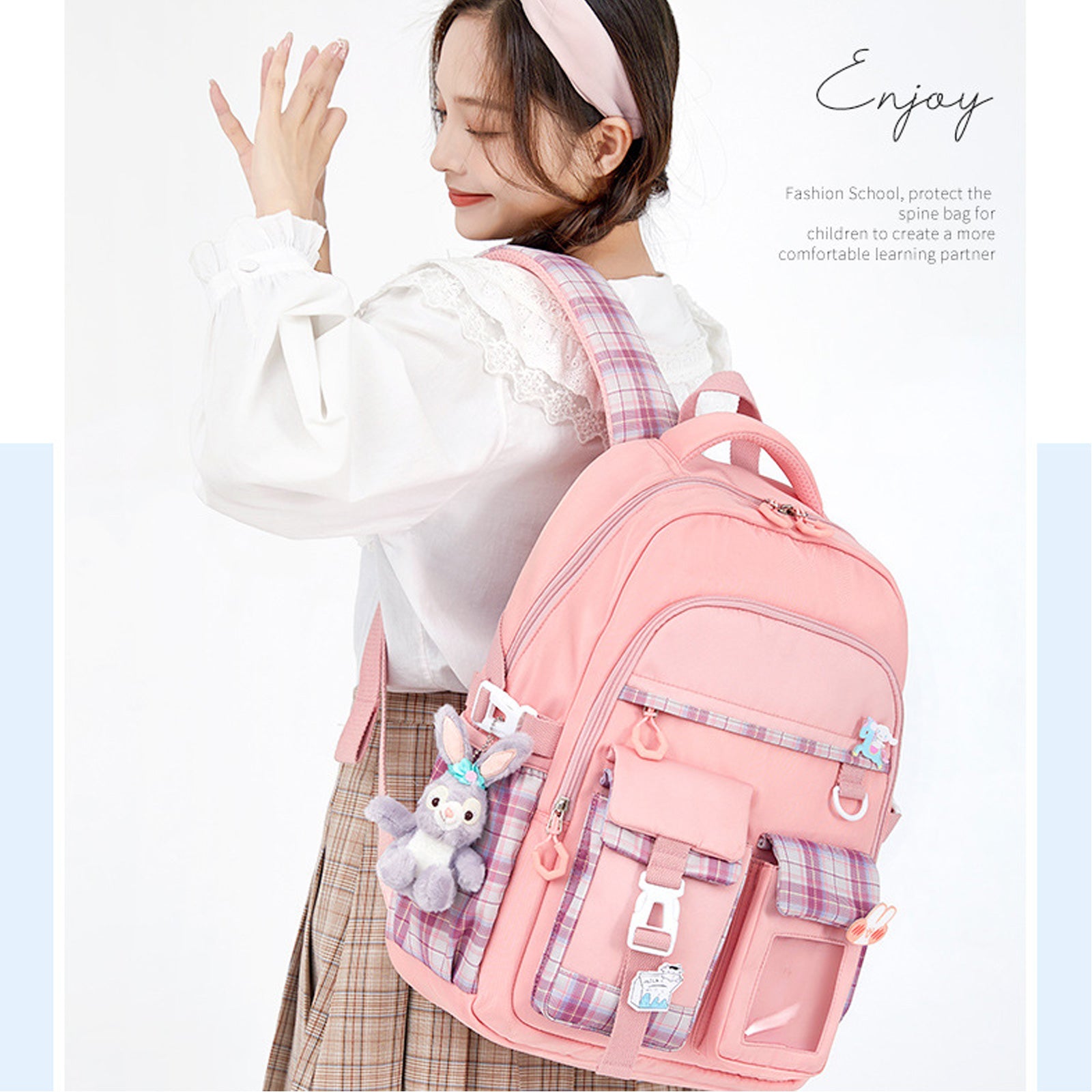 【Adorable mochila para niña】El encantador diseño a cuadros de esta mochila para niña llama la atención en la escuela y se convierte en una vista encantadora. A tu pequeño le encantará esta mochila escolar.