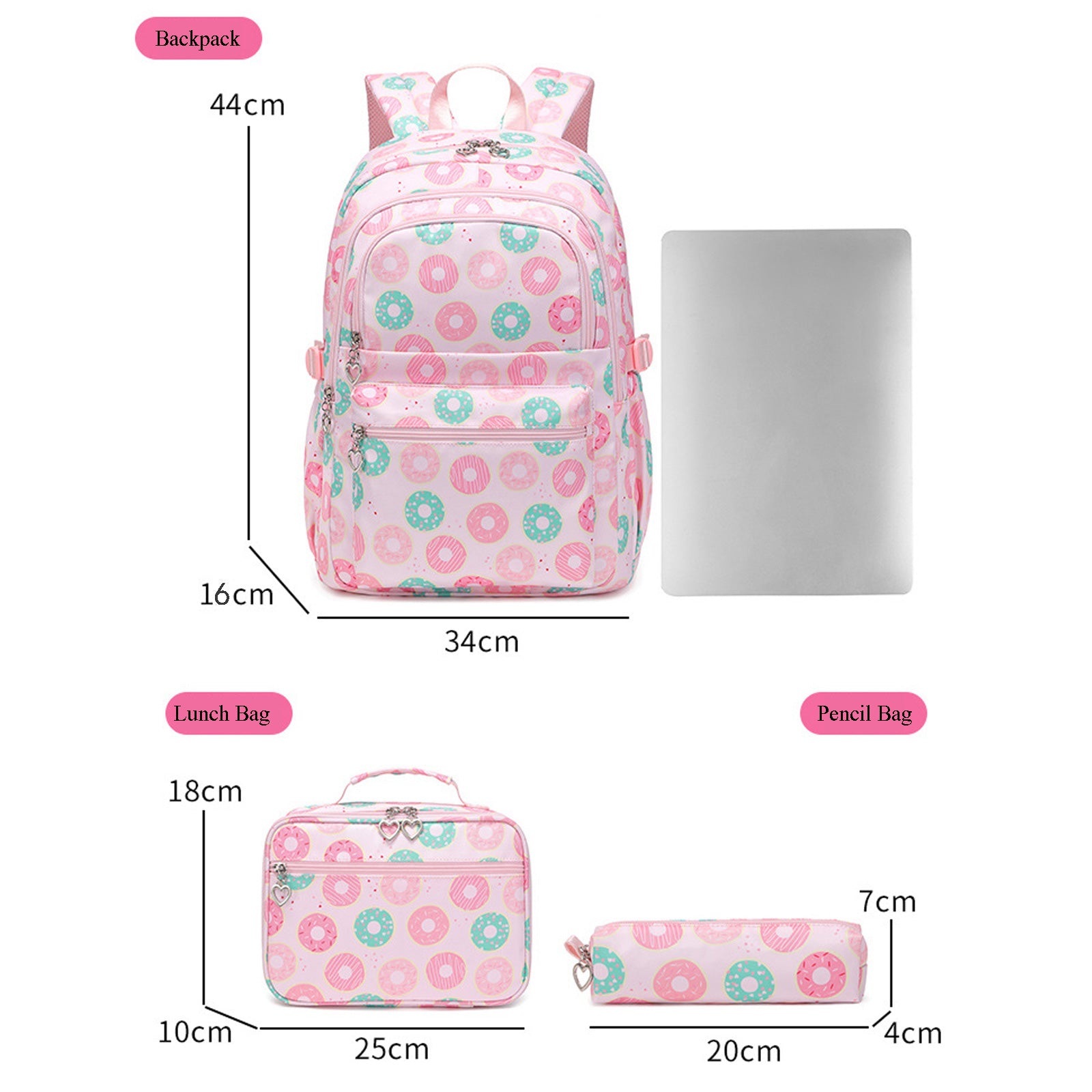 Other features: backpacks for girls can perfectly accommodate a 15-inch laptop. It is carefully designed so children can easily carry books, folders, umbrellas, water bottles, and other school supplies. The interior of the lunch bag is upgraded with a fresh-keeping lining, making it easy for children to carry lunch. Fruit and other foods provide a healthy and safe environment for children