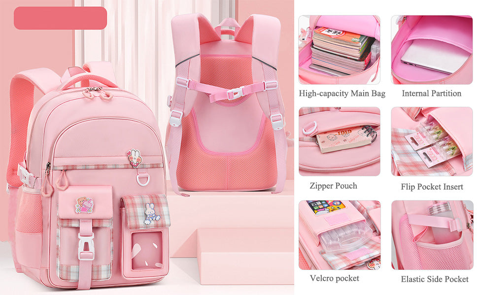 【Capacity】Inside the girls' school bag, you'll find a total of 14 storage pockets in various sizes, providing ample space to effortlessly organize and store children's school essentials.