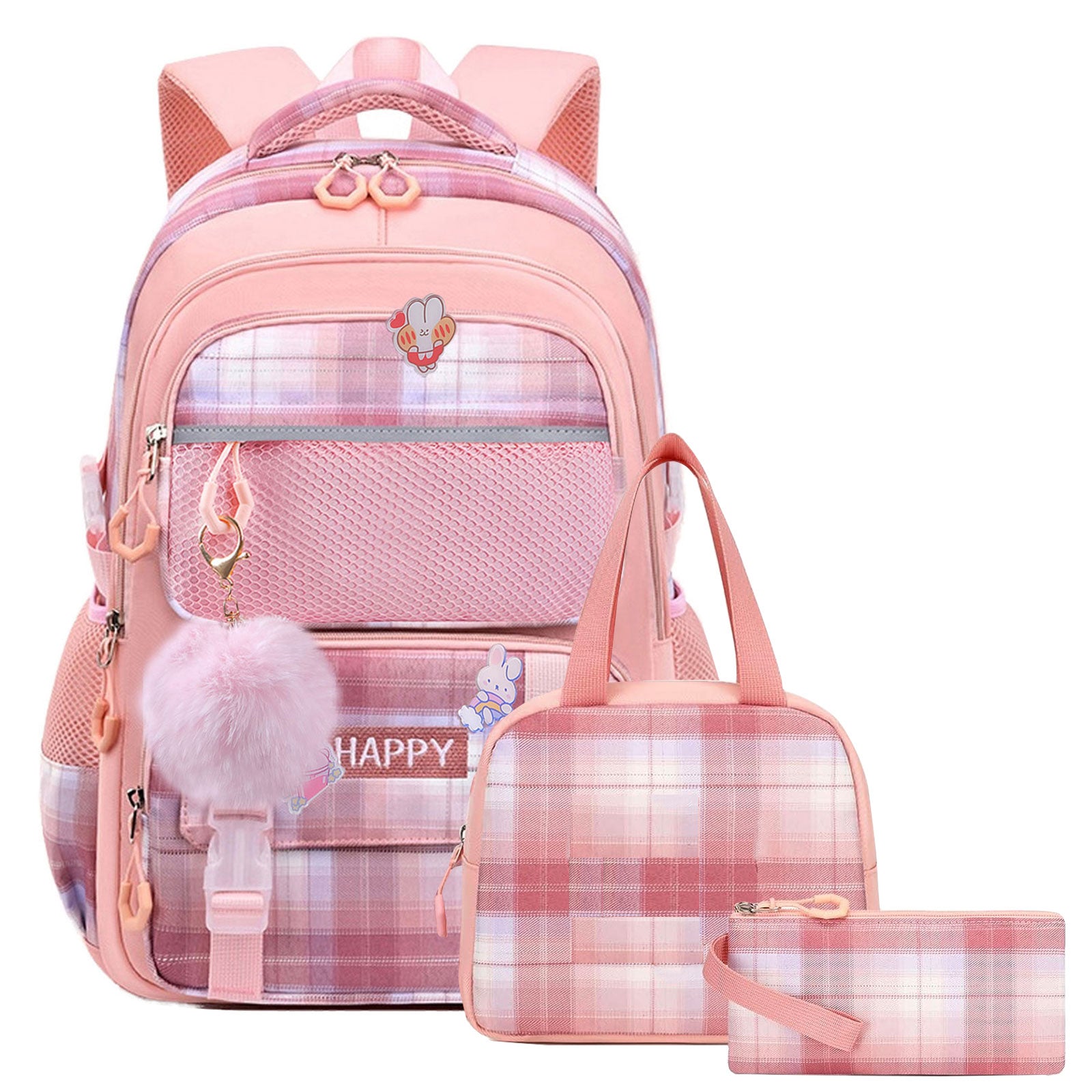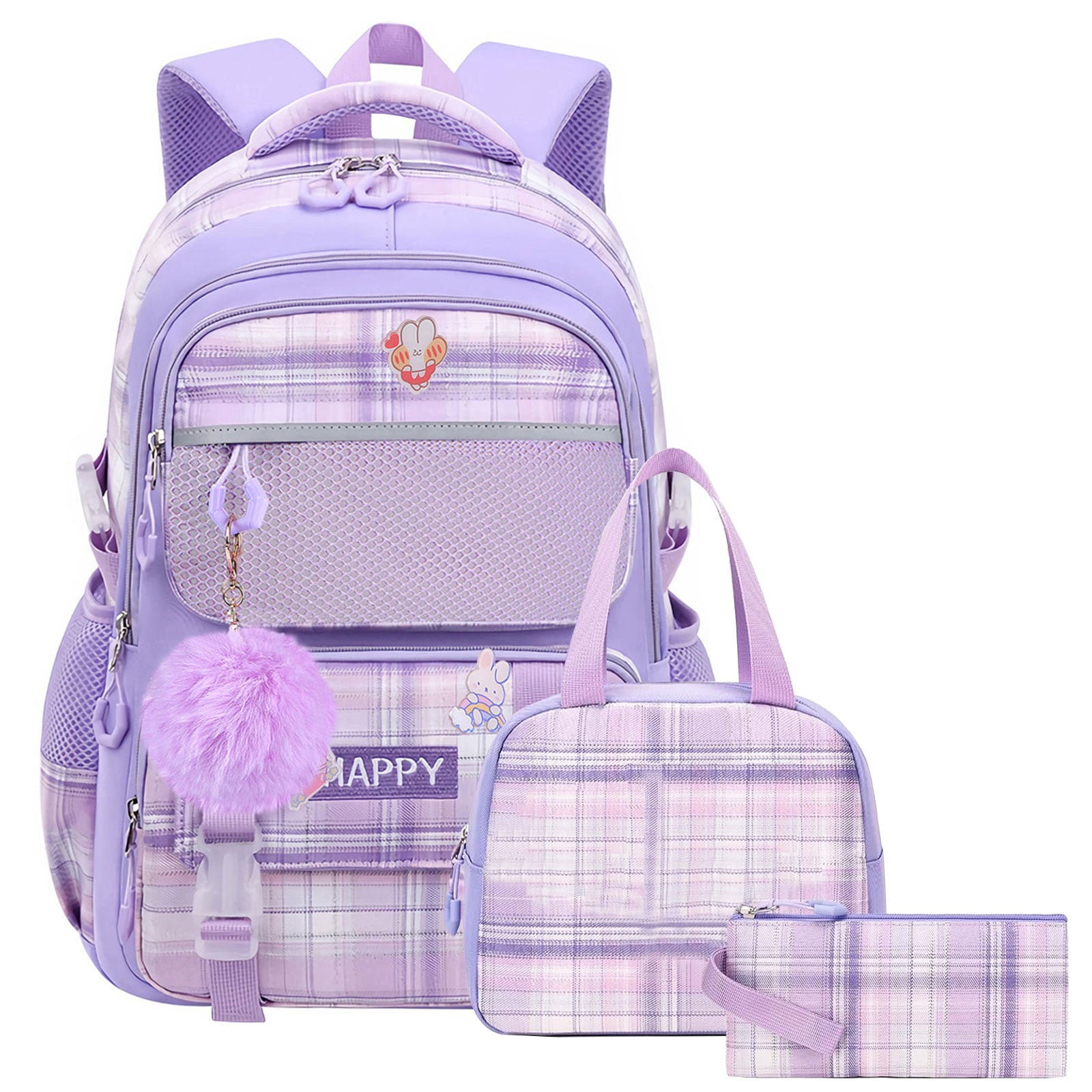 KEBEIXUAN Kids Backpack Set for Girls - Large School Bookbag with Compartments + Matching Lunch Bag & Pencil Case