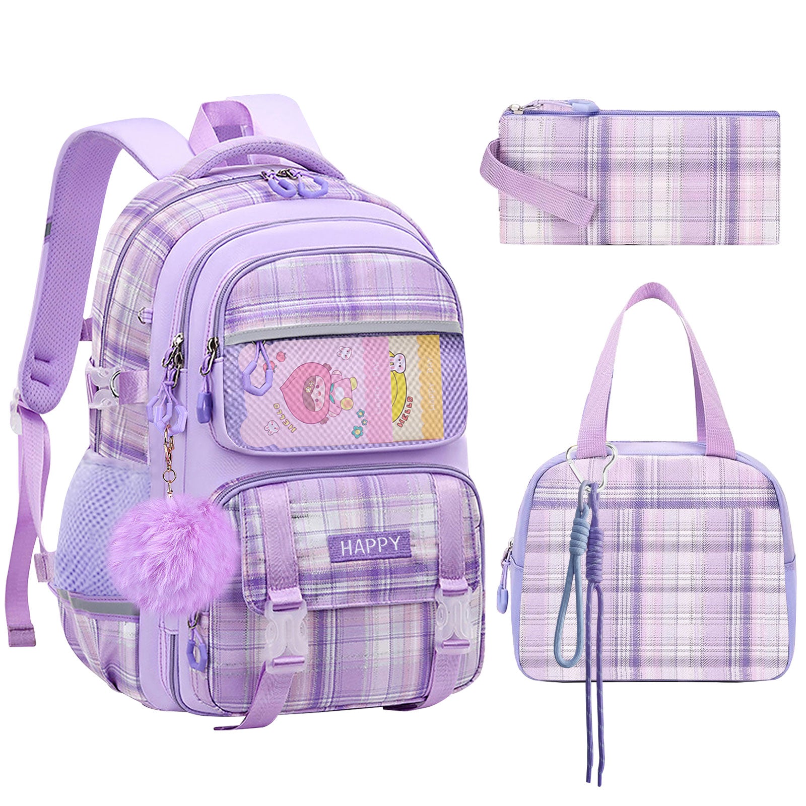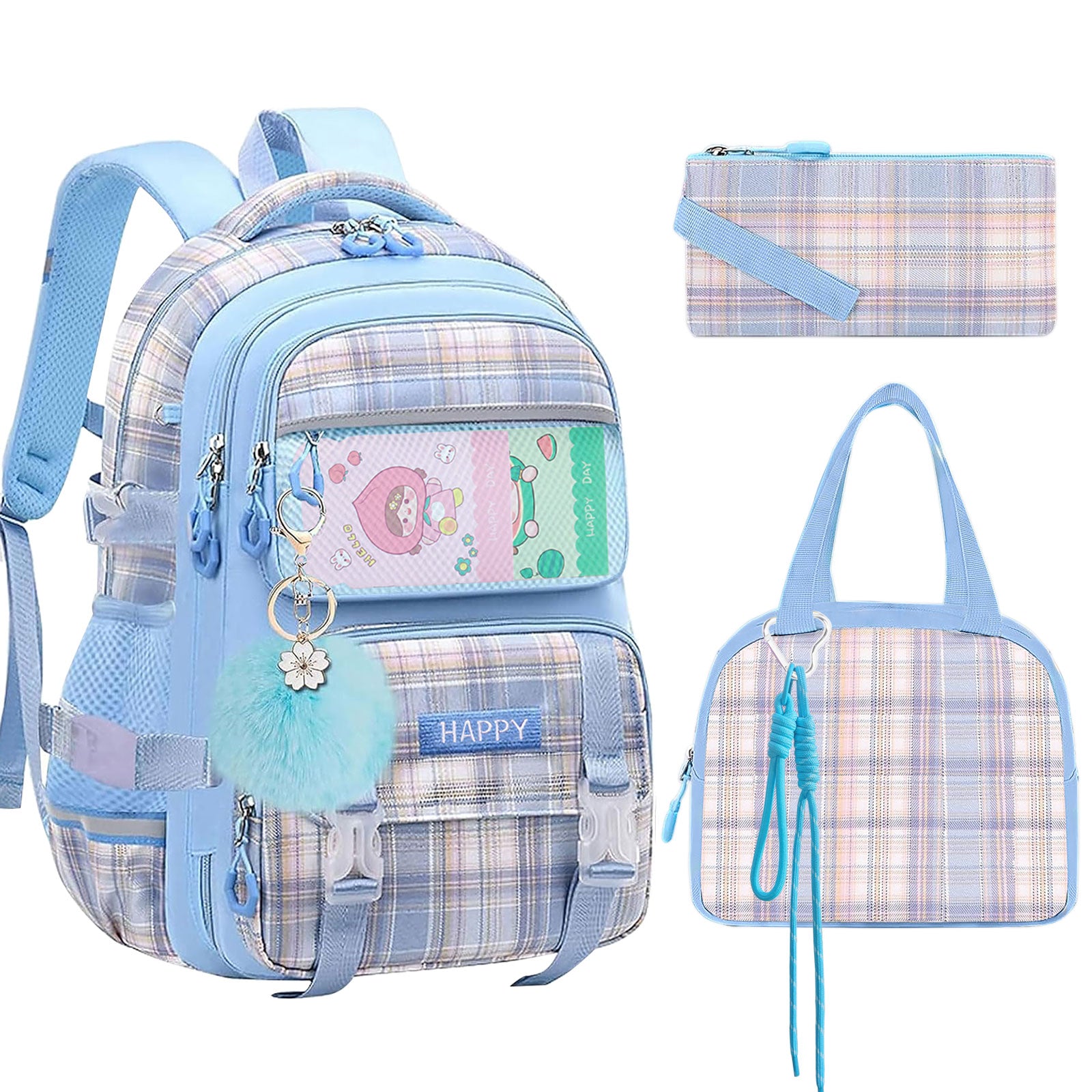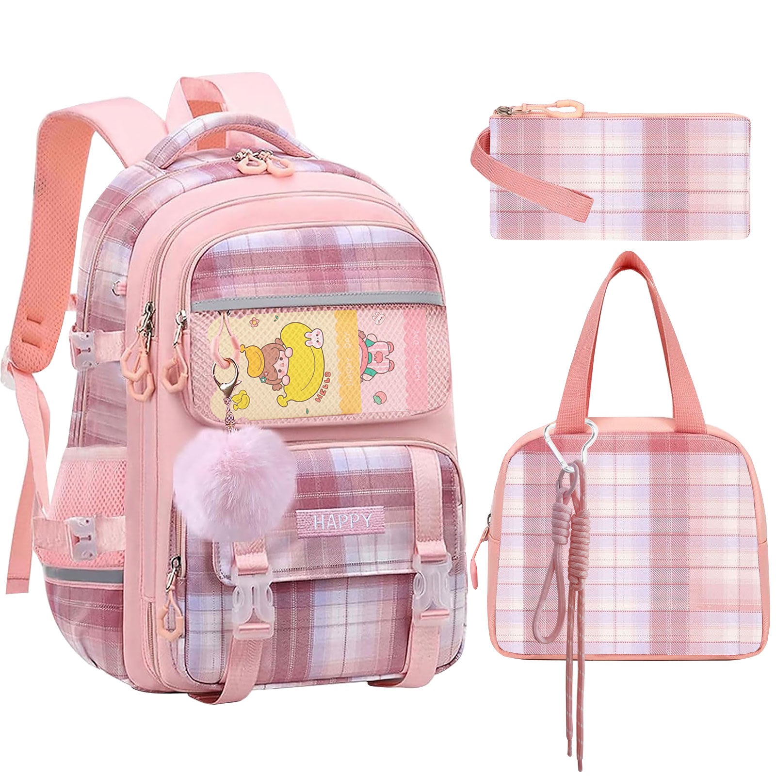 Sized at 31 x 20 x 44 cm (12.2" x 7.87" x 17.32"), this school backpack set is designed for girls aged 6 to 12. It includes a matching backpack, insulated lunch bag, and pencil case—covering all school and outing essentials in one set.