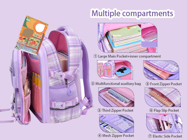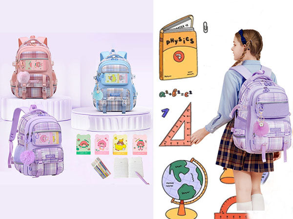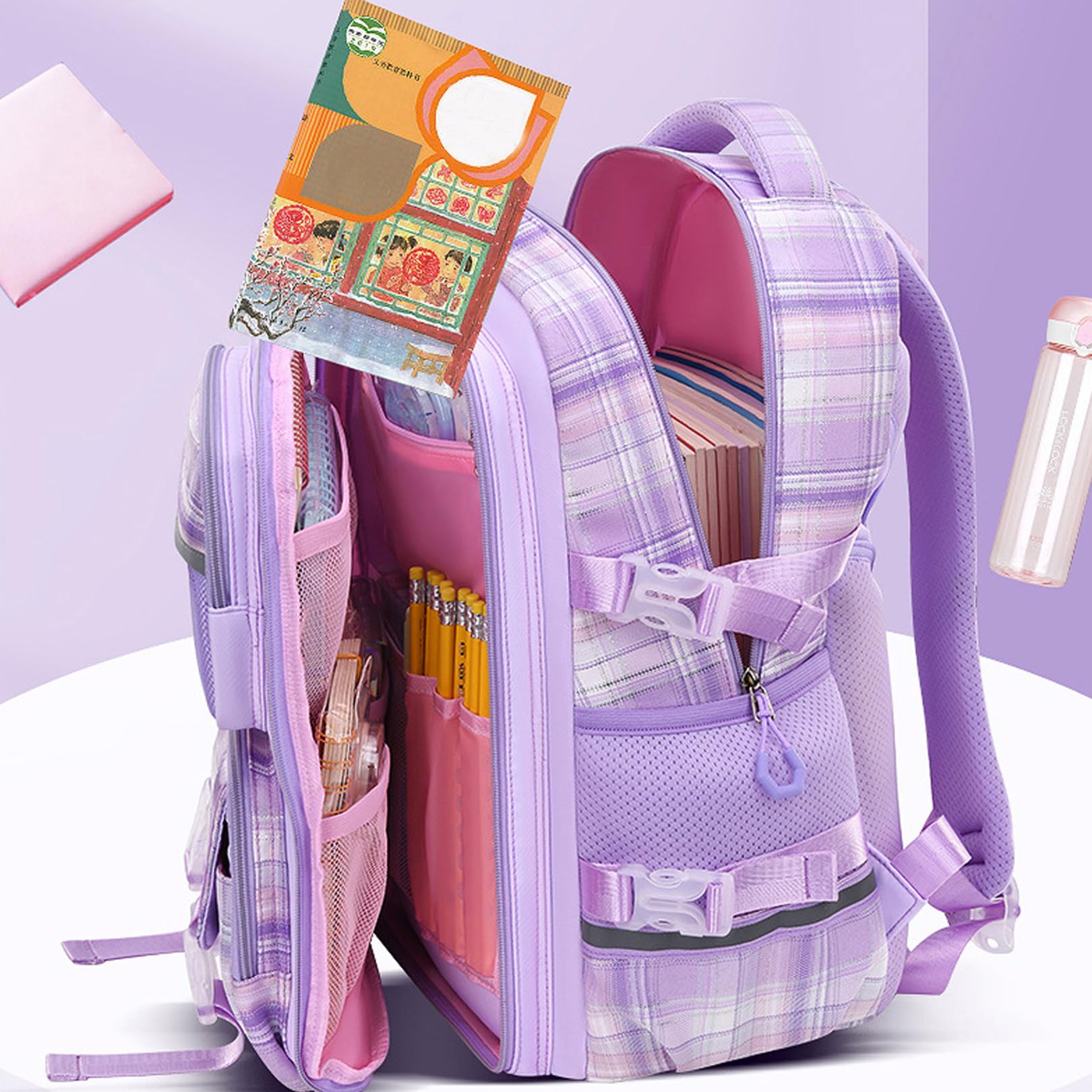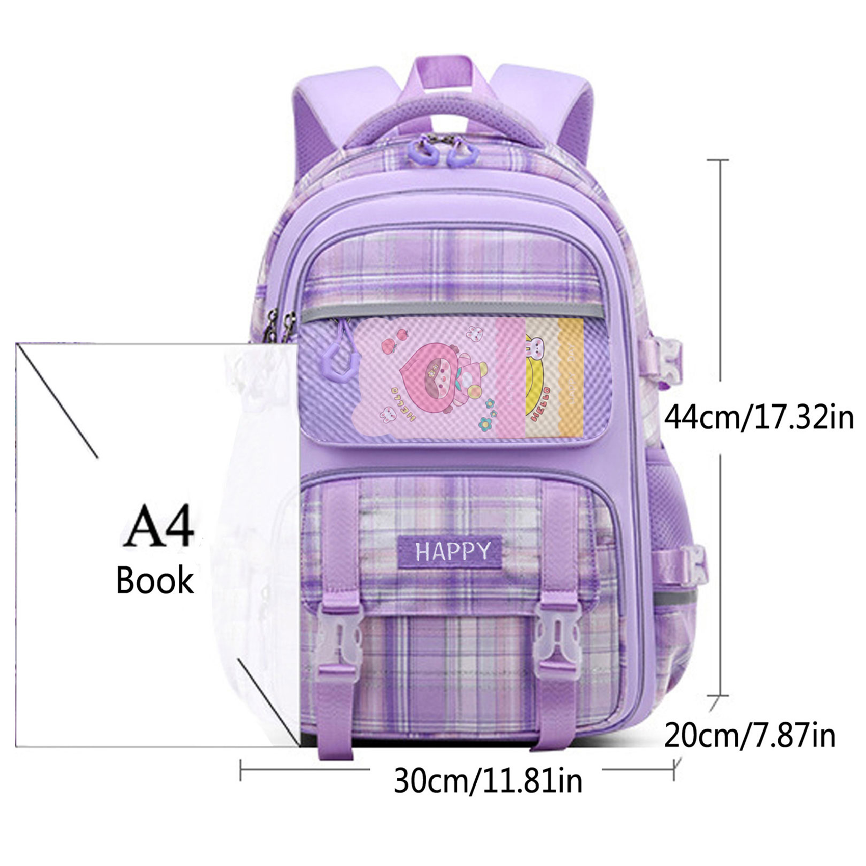 Featuring a stylish plaid pattern and a 180° wide-opening main compartment, this backpack makes packing and unpacking easier than ever. Ideal for quickly accessing books, lunch, and school supplies.
