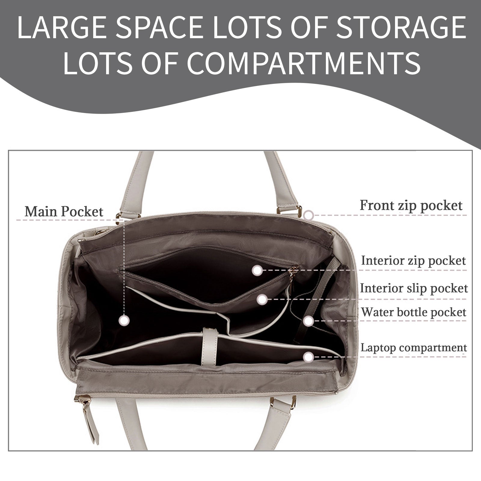 Organized Efficiency: With 7 compartments, including a main section that fits a 13.3-inch laptop, an interior compartment, 2 slip pockets, a waterproof slip bottle pocket, and a dedicated key holder, this laptop tote bag offers excellent storage for files, books, passports, wallets, and more, keeping everything neatly organized and accessible.