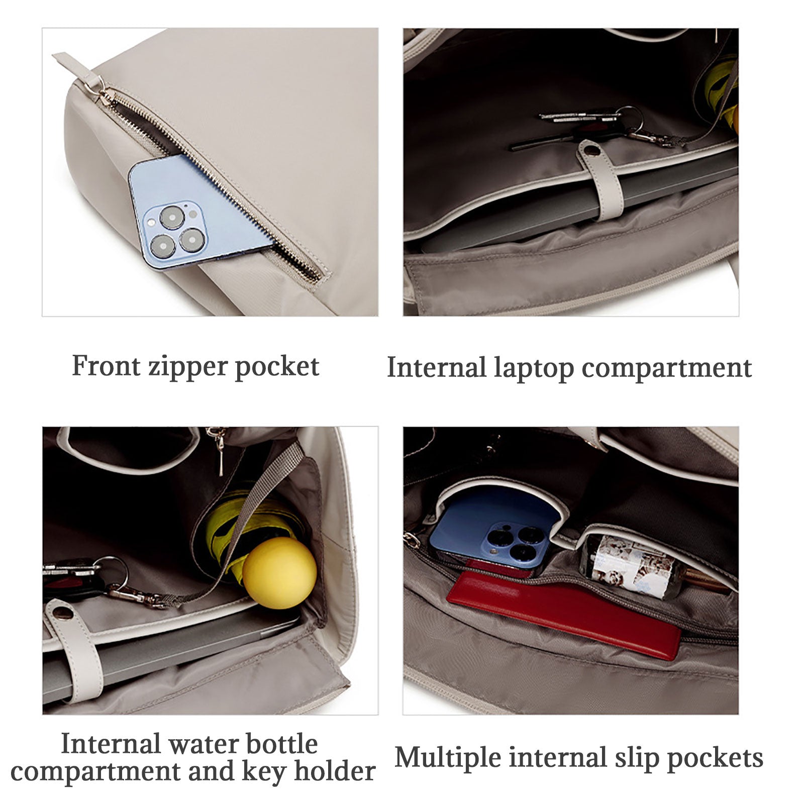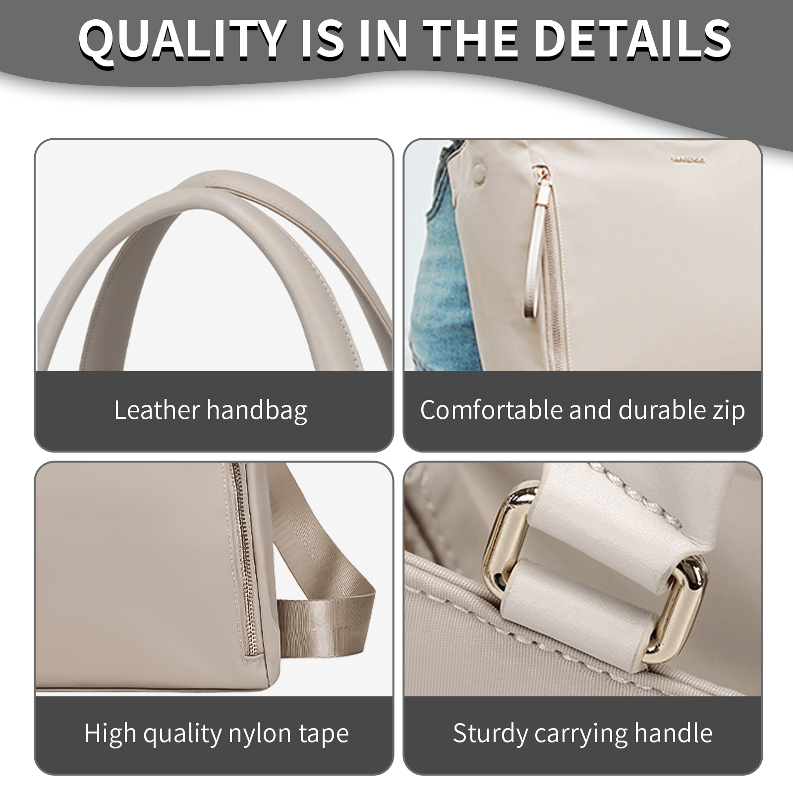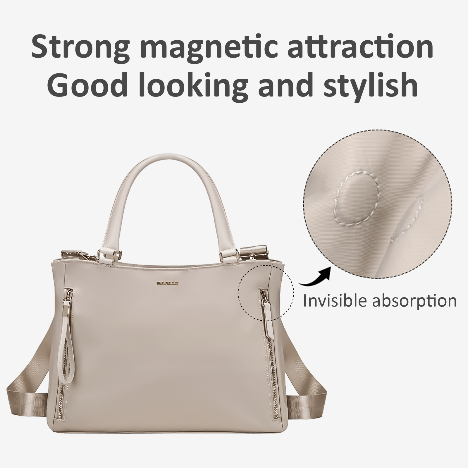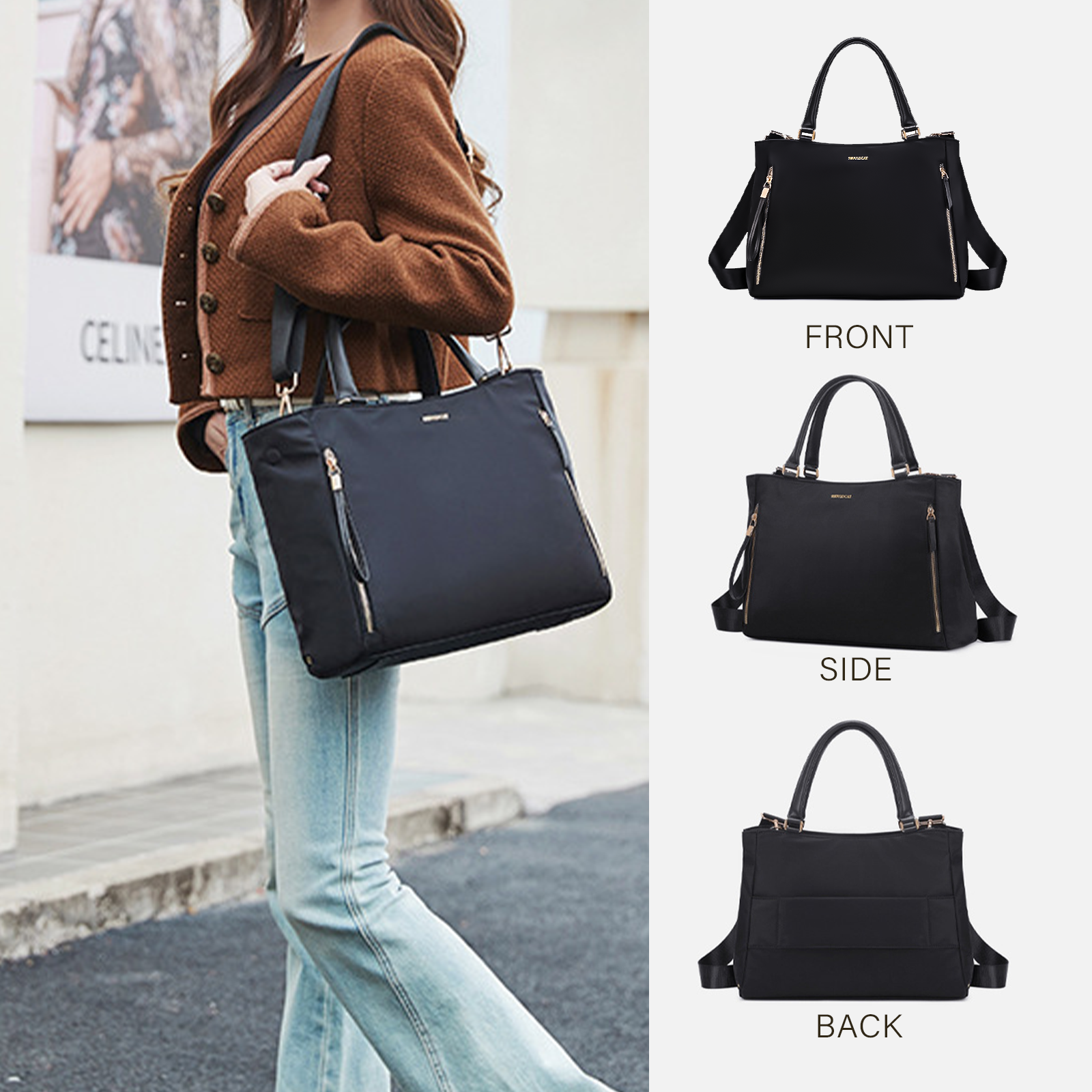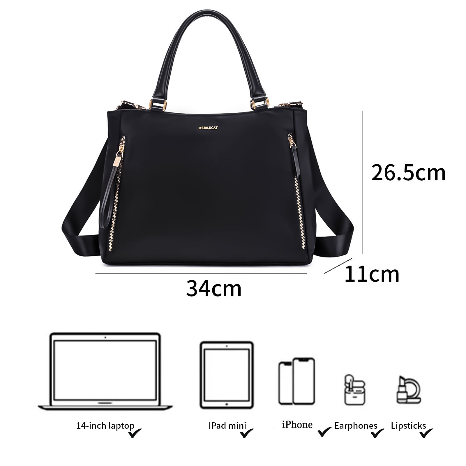 Tailored for Women: Exclusively designed for women and perfect for laptops up to 13.3 inches, this stylish laptop tote bag is made from high-quality nylon fabric with a polyester lining, ensuring a lightweight feel compared to bulky leather bags. The stain-resistant, smooth fabric is skin-friendly and easy to clean.