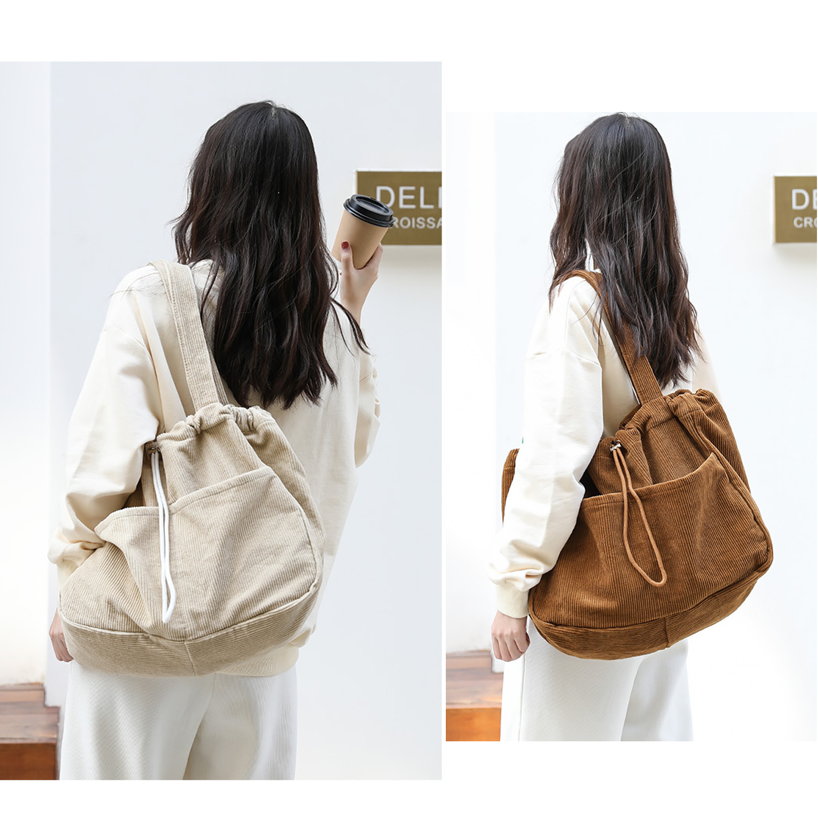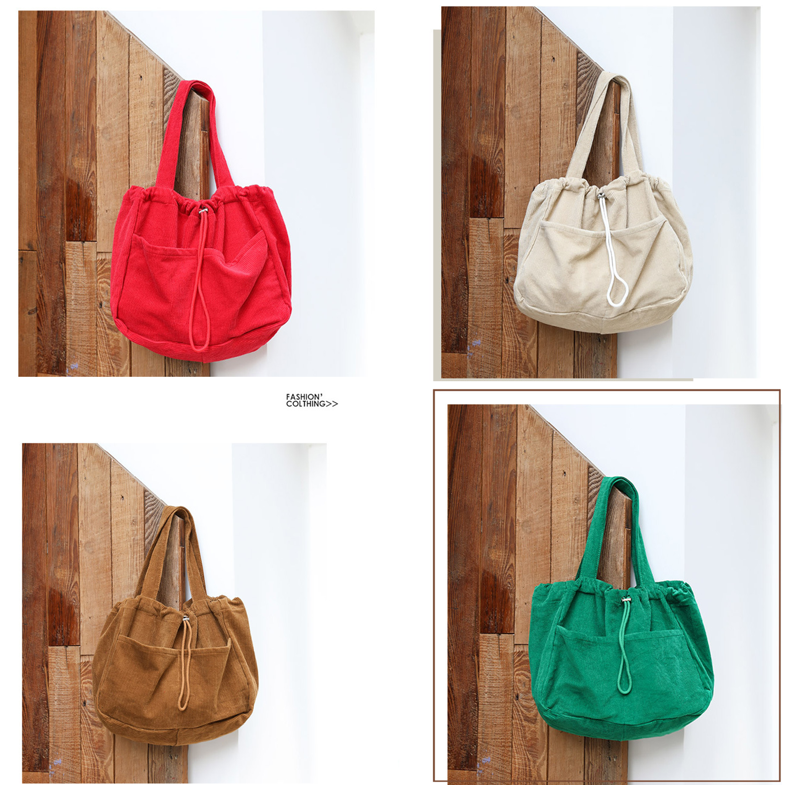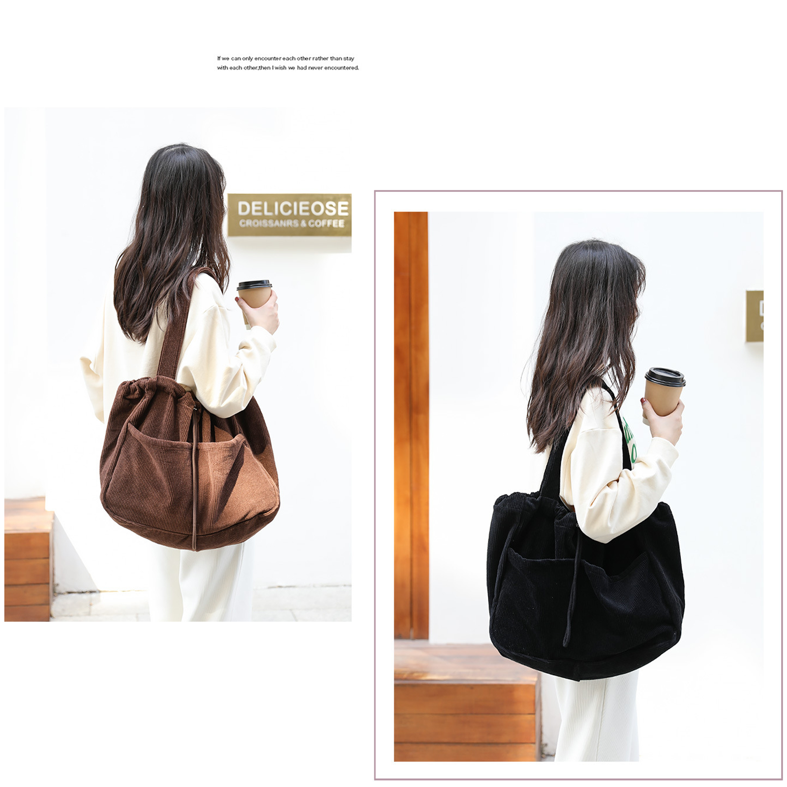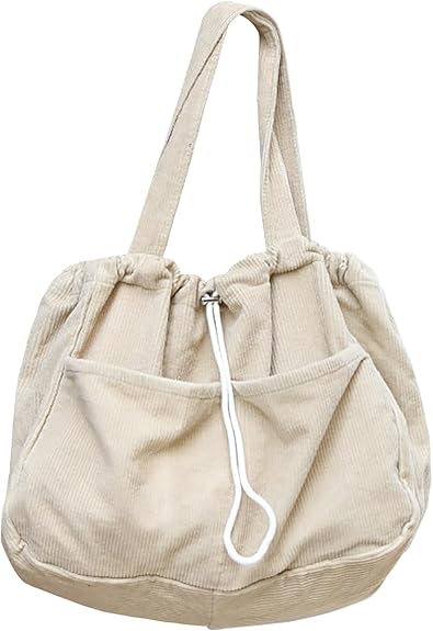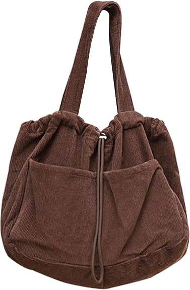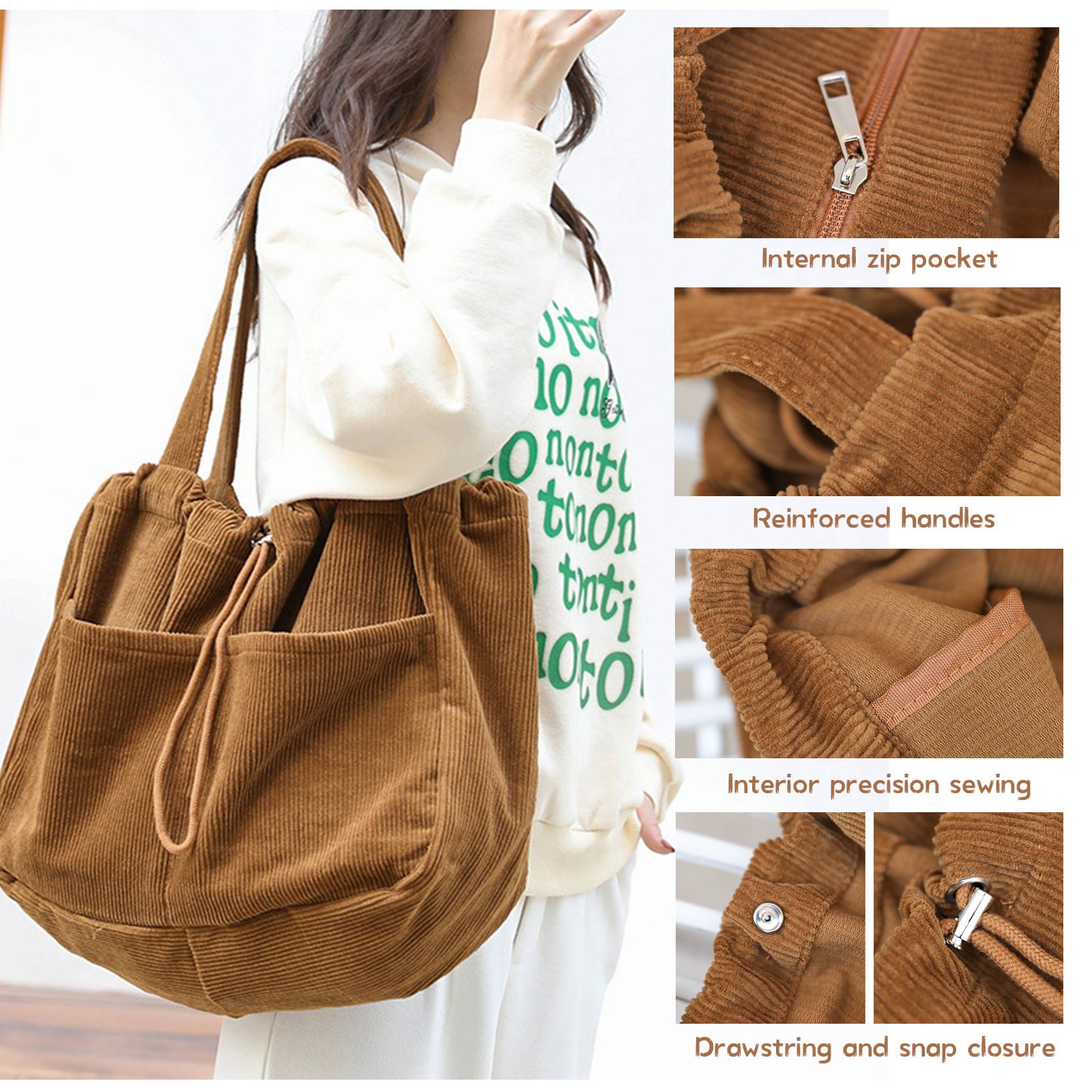 WYCY Corduroy Tote Bag for Women, Large Capacity Corduroy Bag Work Drawstring Bags with Inner Pocket Office Tote Handbag